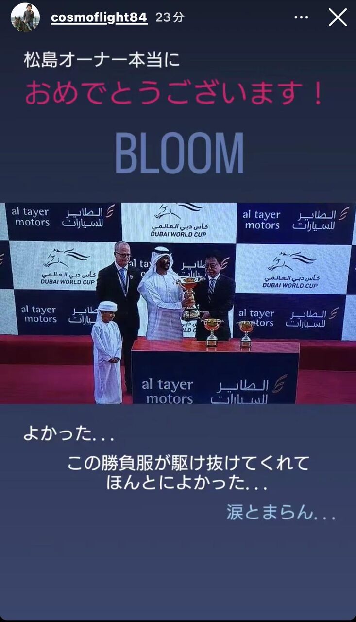 ウシュバテソーロ、凱旋門賞挑戦へ 2023年03月26日 ウシュバテソーロ ウシュバテソーロ(欧字名:Ushba Tesoro、2017年3月4日 - )は、日本の競走馬。主な勝ち鞍は2022年の東京大賞典、2023年の川崎記念、ドバイワールドカップ。 馬名の意味は、山の名+冠名。 2017年のセレクトセール当歳セッションにて、了徳寺健二に2500万円で落札された。… 19キロバイト (1,056 語) - 2023年3月26日 (日) 13:05 (出典 news.netkeiba.com) なんて話をしていたみたいですね(出典 【速報】ウシュバテソーロ、次走凱旋門賞へ)1 名無しさん@実況で競馬板アウト :2023/03/26(日) 04:41:26.80ID:KWnKLf0F0 https://twitter.com/nikkanhanbai/status/1639701198688202761 https://twitter.com/5chan_nel (5ch newer account) (出典 【速報】ウシュバテソーロ、次走凱旋門賞へ) 【ウシュバテソーロ、凱旋門賞挑戦へ】の続きを読む