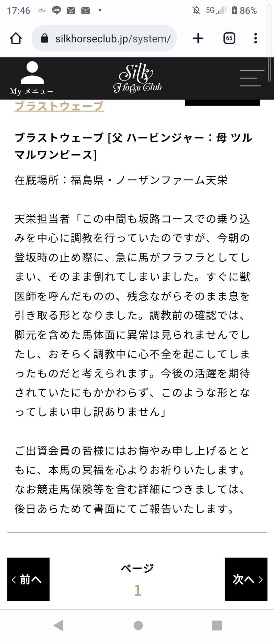 どんなに活躍しても種馬にはなれっこない可哀想な馬だったな、最後もこんなだと辛い
